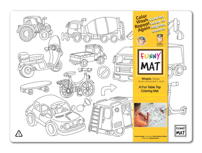 Funny Mat is a table top cover that can be used for craft projects such as drawing, coloring or as a protective mat for painting, plasticine and play dough or as a placemat. The designs on Funny Mat can be colored with water-based, washable markers. Funny Mat is made of polyproylene and is recyclable and reusable.