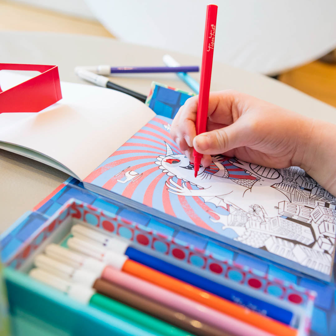 3D Sci-Fi Fun is jam-packed with colouring pages, coloured markers and your very own pair of 3D glasses! In fact, everything you need to transport to another dimension is all in one self-contained box, with a magnetic flap to keep contents safely stored.
