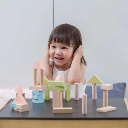 - Comes with 40 blocks of different shapes and sizes in our pastel colorway
