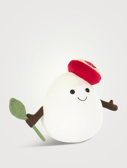 Amuseables Mozzarella is a cuddly Caprese cutie. A soft ball of cream fur, this fromage friend is adorned with a big smile and a chunky slice of textured tomato. With cocoa fine cord arms holding a suedette Basil leaf, this cheese sweetie is the perfect gift for foodie friends and cheese lovers alike!