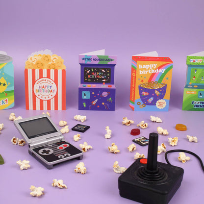 Embark on a journey of fun and nostalgia with our exciting Astro Adventures Arcade Game-Shaped Birthday Card. This unique greeting card, designed to resemble a classic arcade game machine, captures the thrill of space exploration with its vibrant colours and intricate details. Perfect for gamers and space enthusiasts alike, it's sure to spark joy and excitement for anyone celebrating their special day. Crafted from high-quality card, it's a thoughtful and fun choice for spreading birthday cheer. Birthday Card Features: Made in the UK Size: 105mm x 150mm Luxury heavyweight and responsibly sourced card Paired with a recycled kraft envelope Blank inside Supplied without cello packaging This card is part of the Playtime collection from Mifkins.