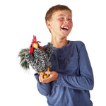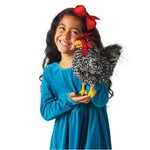 Dont sleep on getting the Folkmanis Barred Rock Rooster! This cocky character has fabulous feathery soft plush, a bright velvety comb and movable wings and beak to strut and peck with the best. Cock-a-doodle-doo!