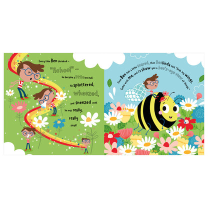 When grumpy Ben refuses to share his toys, Beelinda the honeybee shrinks him down to her size and teaches him a lesson! With a bee’s-eye view of the world, can Ben learn to bee kind to others? Join Ben on an unbeelievable adventure, as Beelinda and her buzzy buddies show him the power of kindness, teamwork, and caring for the world.