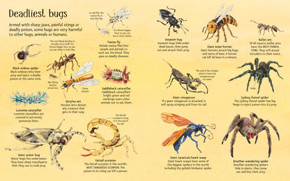 A skin-crawling introduction to the world's biggest bugs, from gigantic spiders as big as a dinner plate, to butterflies larger than dogs Find out about the biggest swarms and colonies, the deadliest insects and the bugs with the best camouflage. Huge fold-out pages with life-size illustrations show children just how big the bugs really are.
