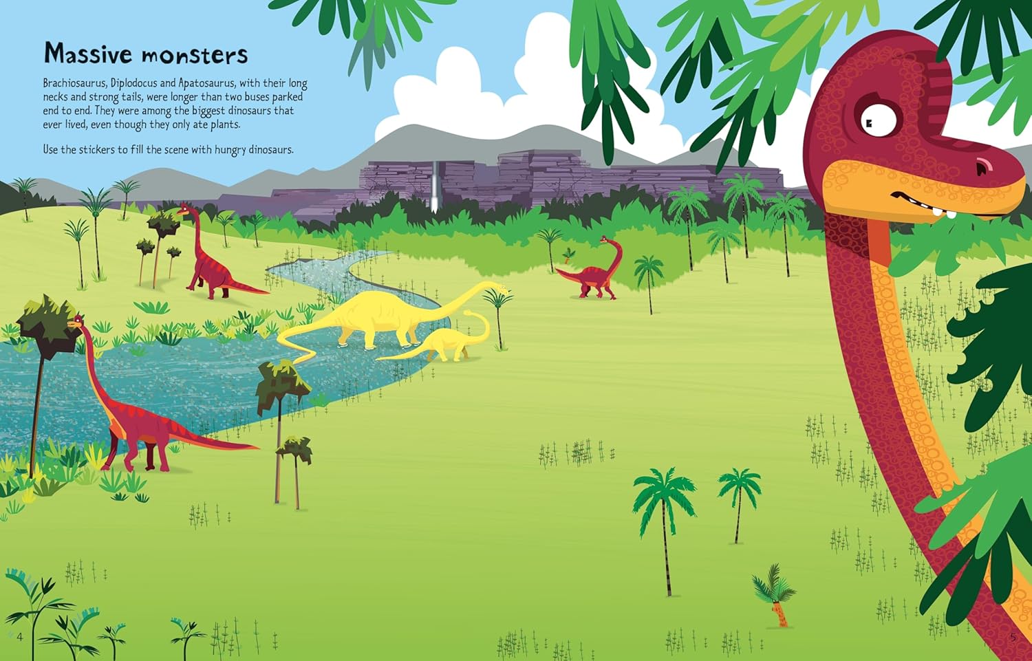 Packed with dinosaurs big and small, this prehistoric sticker book will keep young dino fans amused for hours. With over 250 colorful stickers to create exciting scenes, including "The first dinosaurs", "Hungry herbivores" and "Under the sea." Includes fascinating facts about the dinosaurs and how they lived.