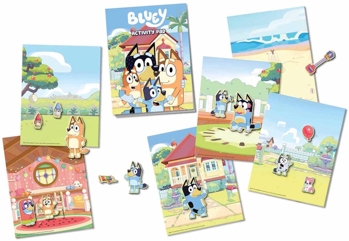 Bluey and her sister Bingo love to play games and have fun with their Mum and Dad! The fun is never done in this play case with an activity pad full of mazes, coloring, and more. Young Bluey fans can use the 30 magnets to decorate the 6 play scenes for extended fun in this interactive format!