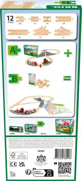 Expand your BRIO World Starter Train Sets with the 36099 Starter Track Pack. This train track expansion pack includes a selection of wooden railway pieces that can be used to create five additional layouts to the 36079 Starter Travel Train Set (sold separately). Combine different length straight tracks, switching tracks and connector tracks and either follow the suggested layouts included or create your own open-ended designs.
