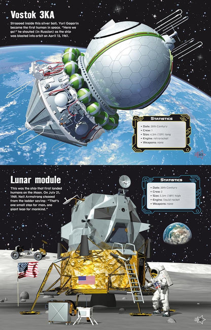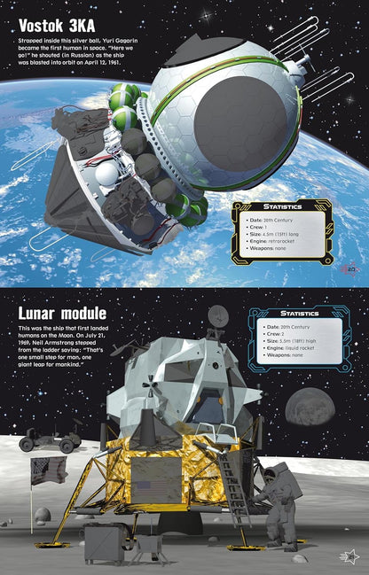 Young space fans can create their own amazing spaceships in this skyrocketing sticker book. 10 full pages of stickers, including laser guns, rocket boosters, viewing ports and more will keep children entertained for hours. Includes spaceships inspired by famous science fiction stories, as well as actual spaceships and satellites that exist today.