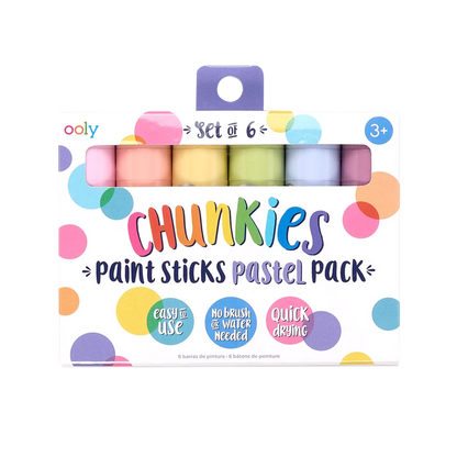 The beloved OOLY Chunkies Paint Sticks are now in pastel! These pretty pastel colored paint sticks are easy to hold, mess-free, and quick drying. Simply twist the barrel for fresh paint payoff without the water and brushes.