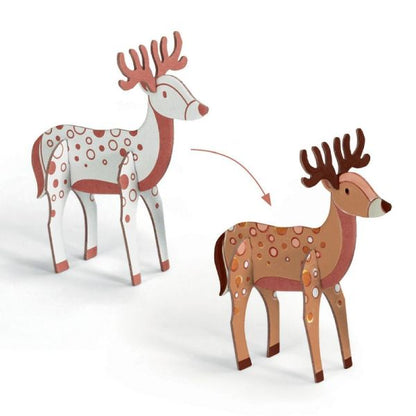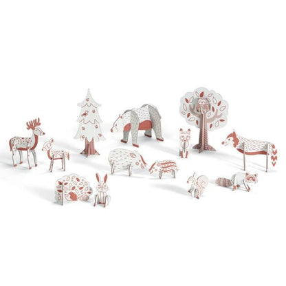 A creative kit with a multitude of cardboard pieces to colour and assemble to create forest animals and scenery. The child plays with all the elements he or she makes and it's the start of fabulous stories!