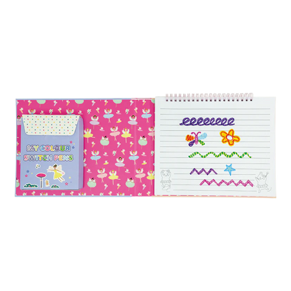 Double the fun with Colour Switch Magic! The magic white pen turns 6 colours into 12, resulting in hours of fun creating patterns and more. Each pad contains 10 doodle pages, 5 colour-in pages, 6 colour switch pens, 1 magic pen, 5 lined pages for writing and 2 sticker pages.