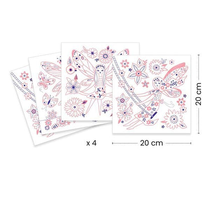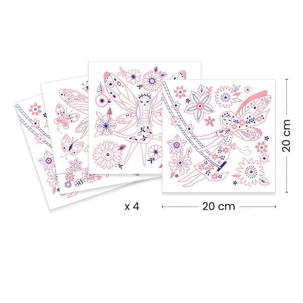 This pocket offers a colouring activity to escape on a magical stroll through the land of the fairies. Colour in the 4 pictures adorned with a golden lacquer. The handy raised gold edges make colouring easier: they guide the tip of the pen so you stay within the lines!