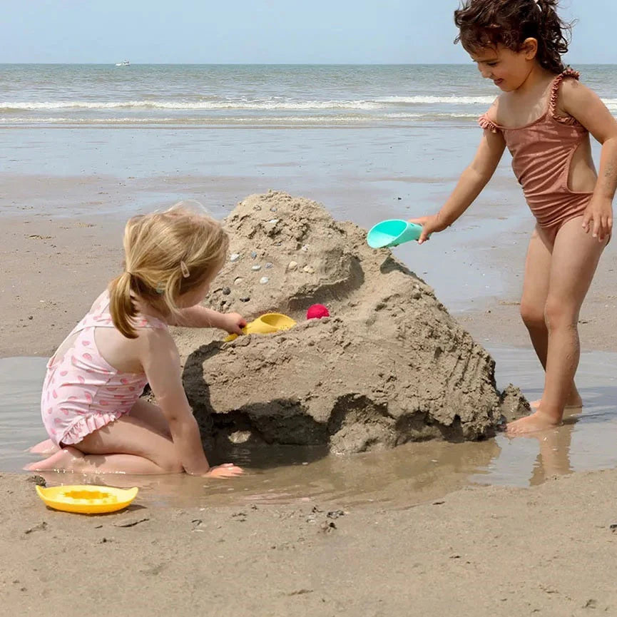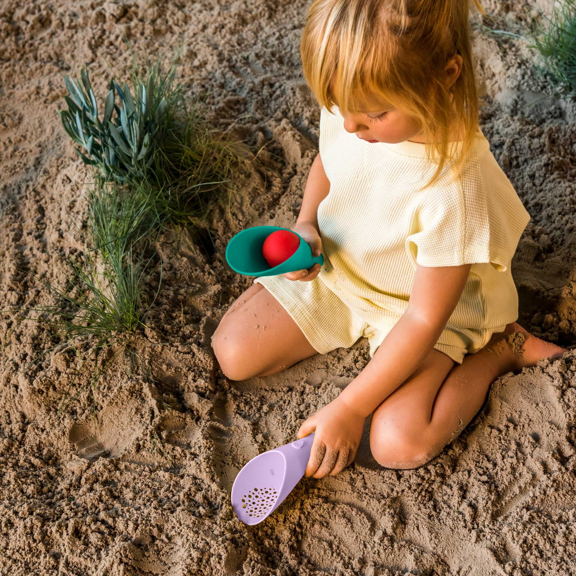Shovel, sifter and ball all in one! Sand, land, water, tub or ocean, the Cuppi knows how to inspire creativity and get kids designing, playing and having a blast. Use the shovel to scoop out sand and make tracks for rolling the ball or use the uniquely designed hole to write or make patterns with sand and water.