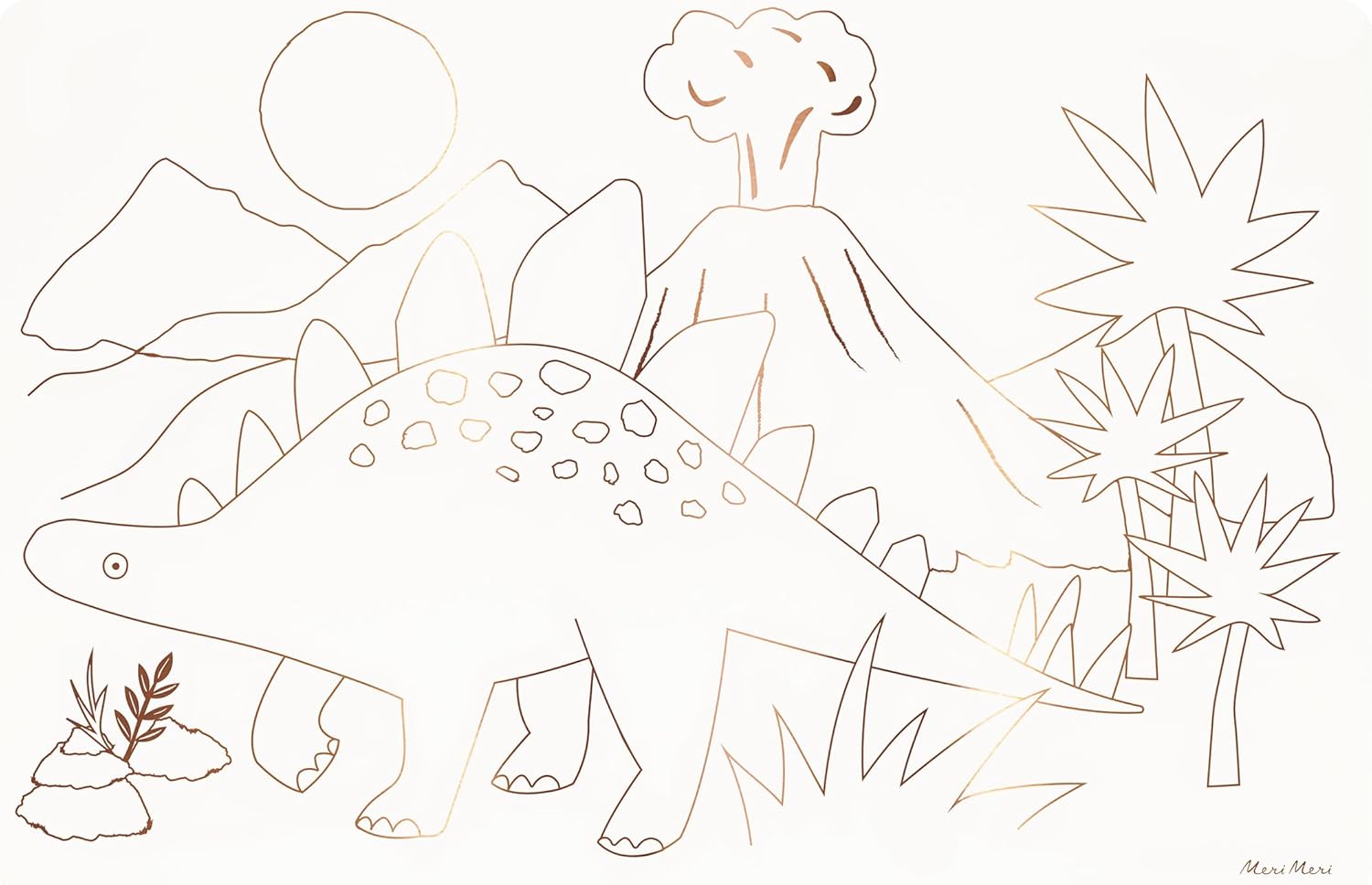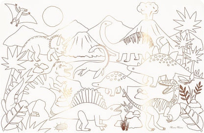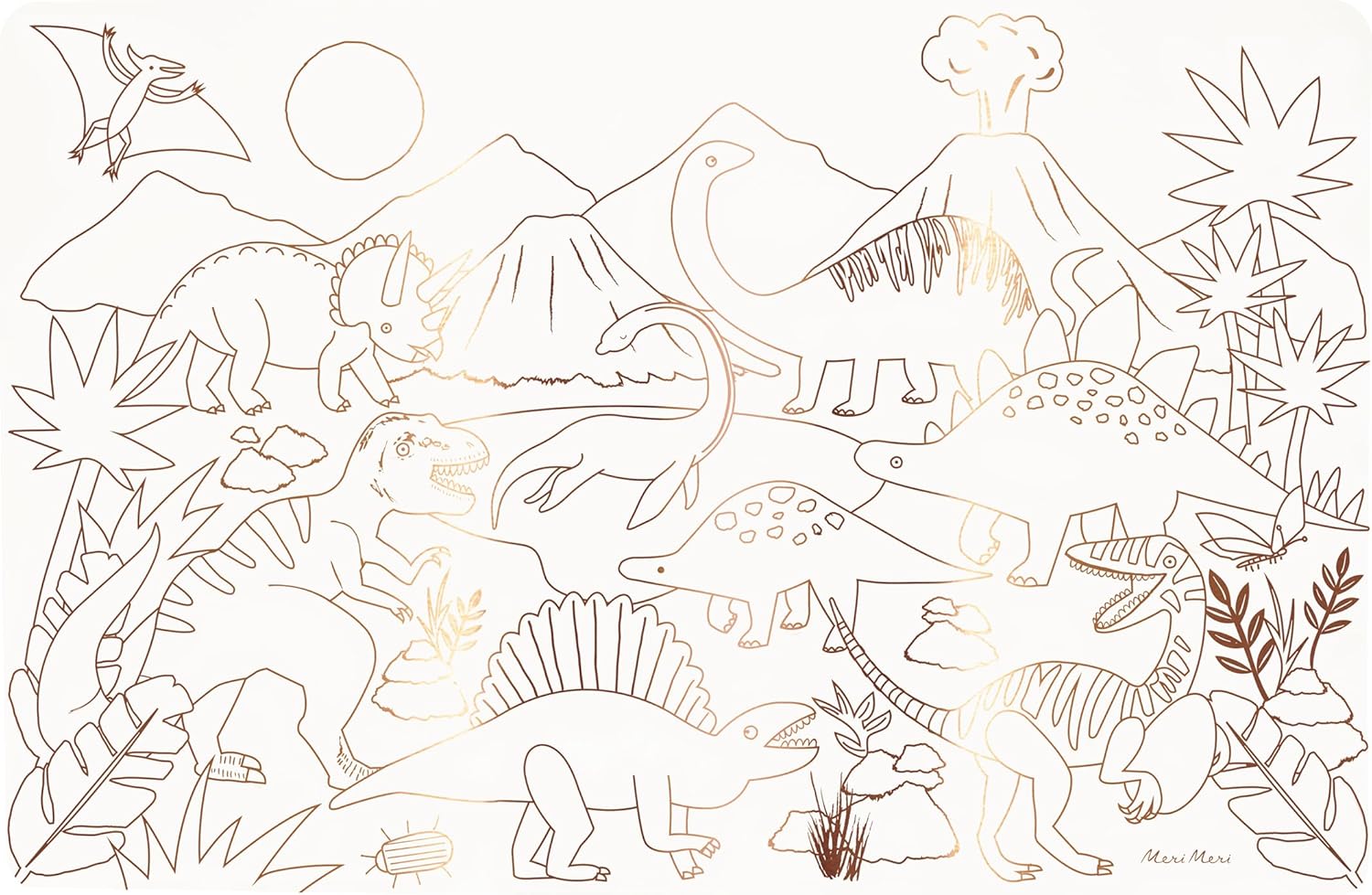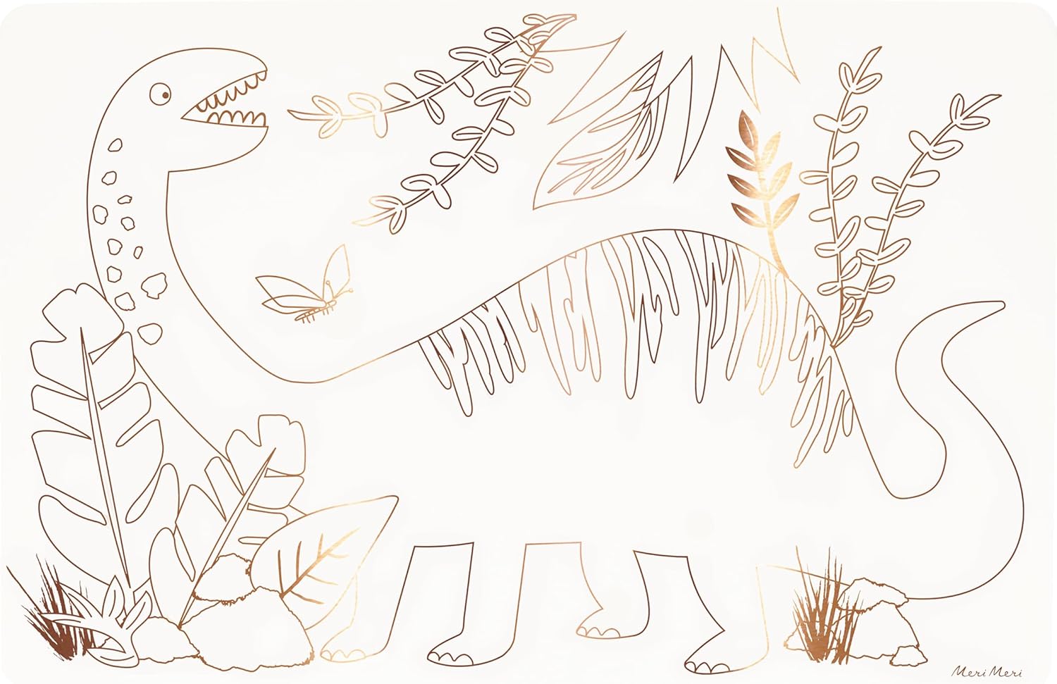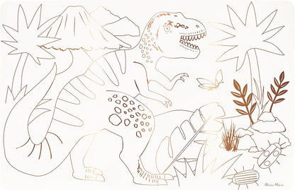 We've got a creative way to keep kids happy at celebratory meals - coloring placemats! Our dynamic dinosaur set features shiny copper foil illustrations kids will love. They're perfect for a dinosaur party or any special dinner.