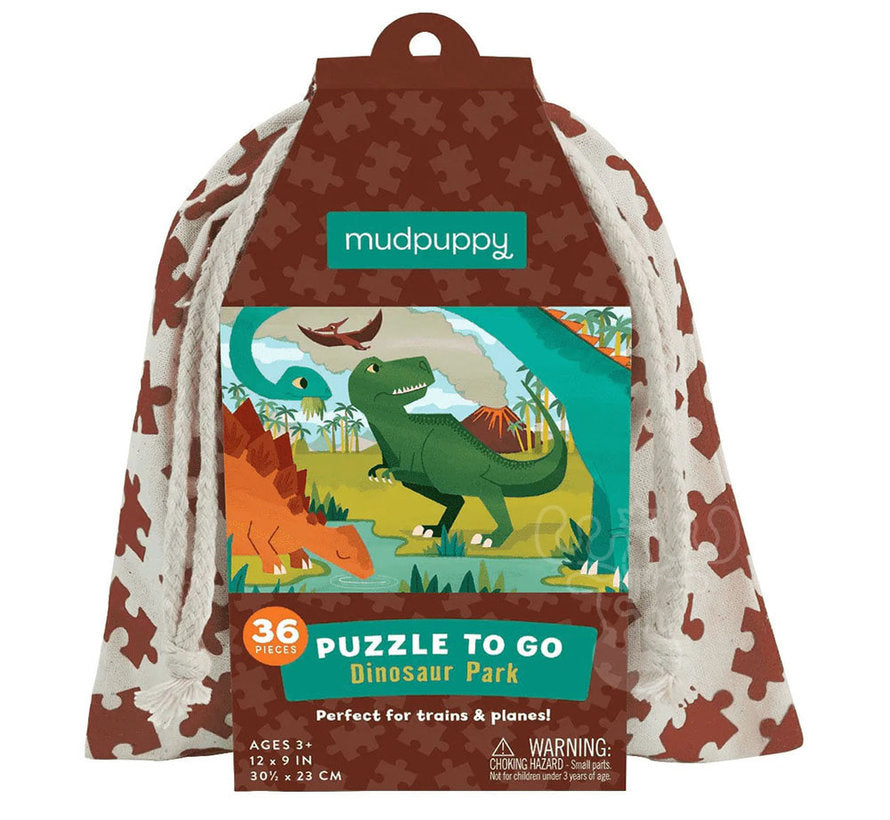 Puzzling on the move has never been easier with Mudpuppy's Dinosaur Park Puzzle to Go. Packaged in a travel-friendly drawstring fabric pouch, this puzzle features a few of your favorite dinosaurs!