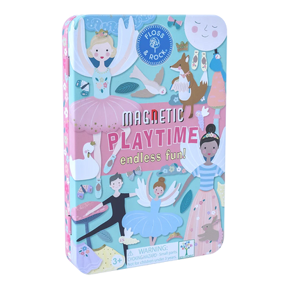 Playtime fun in a handy magnetic tin! Contains 3 sheets of pop out magnets so you can have fun sticking over 50 bright, fun magnetic pieces to the 2 fun scenes on the inside of your tin and let your imagination run wild creating fabulous pictures with ballet dancers, swans, woodland creatures and much more. A perfect pick up gift, printed with soy inks and made using recycled materials. When you're finished playing, the magnetic tin safely stores all your pieces ready for next time.