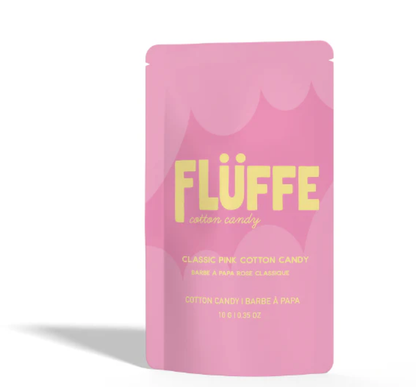 The classic taste, the classic colour. Each package of Flüffe is a single serving of cotton candy that is gluten-free, nut-free and vegan. We recommend Flüffe be enjoyed right after opening for peak freshness.