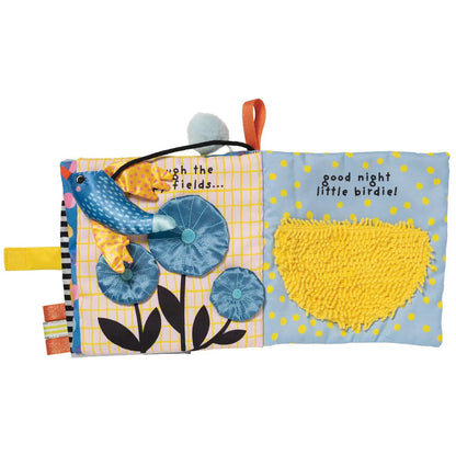 Little ones will have a fun time with the Flutter by Birdie soft book. Featuring 6 pages of follow-along fun with a tethered crinkle birdie. Includes crinkle, peek a boo flaps and a pom pom accent, plus loop for attachment to links and closure to keep pages tidy. Inspire your little reader-to-be with this touch and feel baby book from the Cherry Blossom Days collection by Manhattan Toy.
