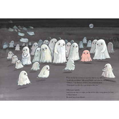 Ghost Gilbert is a very special ghost, ever since he was little. When he goes to Ghost school, he quickly makes a lot of new friends. Gilbert always cheerfully takes part in everything. But when the Principal wants him to call "Boooooooh" just like a real ghost, all Gilbert can do is whisper a soft "Bahoo". Will Gilbert ever become a real ghost? A warm picture book about a different and special ghost, about fitting in and being true to yourself.