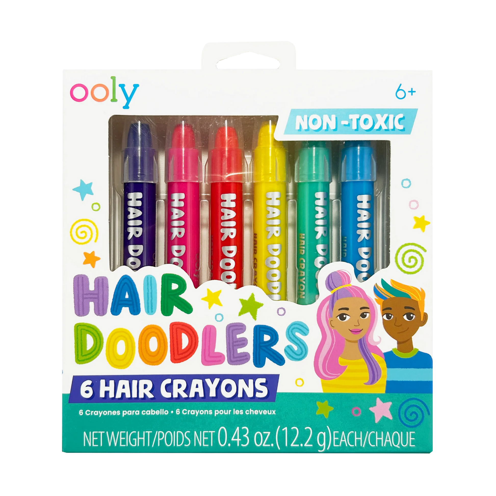 Express your unique style with OOLY’s Hair Doodlers, a set of 6 vibrant, washable hair crayons designed to add a splash of colour to your hair. Perfect for creating colourful streaks, funky patterns, and imaginative designs, these crayons let you transform your hair into a canvas of creativity. Ideal for parties, festivals, or just everyday fun,