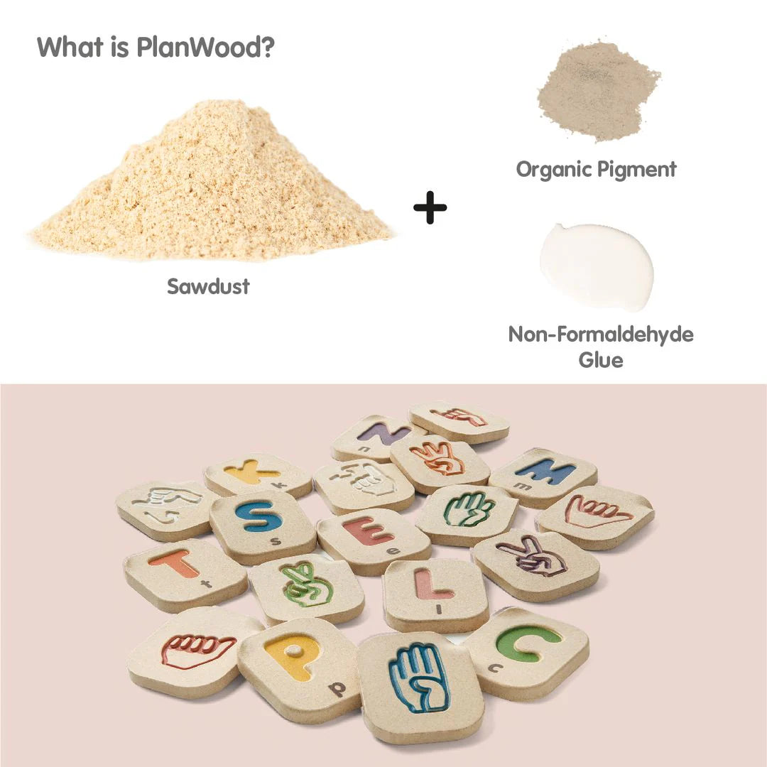 • Includes 26 tiles with uppercase letters and sign language on alternating sides