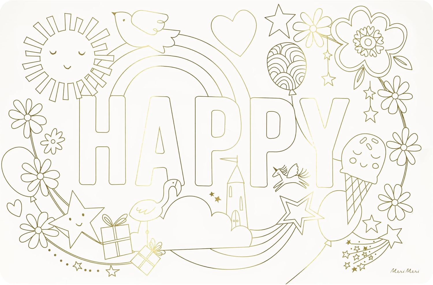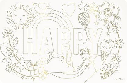 We've got a creative way to keep kids happy at celebratory meals - coloring placemats! Our happy icons set features shiny gold foil illustrations guaranteed to make everyone smile.