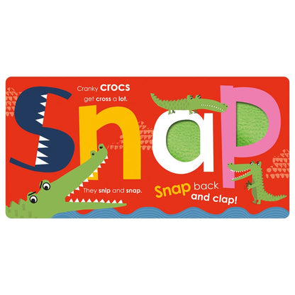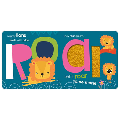 Hiss Roar Snap is an innovative sensory board book, with touch-and-feel letters throughout. The fun rhyme combines assonance, alliteration, and playful language to help teach little ones animal sounds. Children are encouraged to copy each wild animal’s sound as they explore the fun touch-and-feel letters.