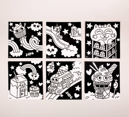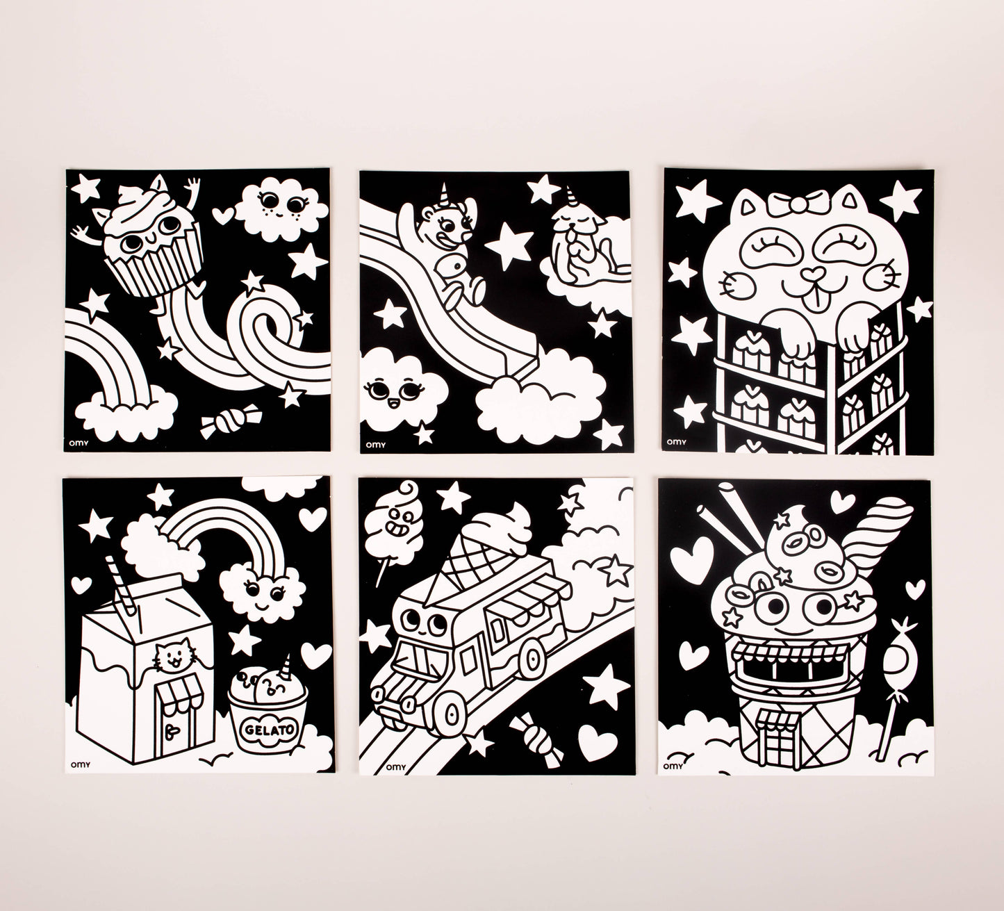 Learn coloring while playing with the super soft velvet colorings ! Cupcakes, rainbows, and kittens...discover the fun and adorable Kawaii universe throughout 6 velvet coloring sheets ! Easy and playful, the velvet helps little ones color within the lines. This is the ideal first coloring exercise to help develop dexterity and creativity.