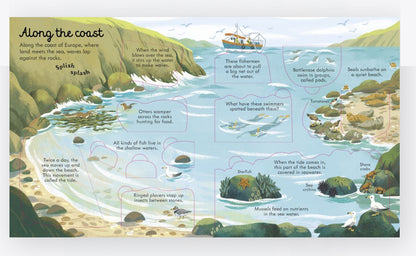 Dive into the watery world beneath the waves in this beautifully illustrated information book, with over 50 flaps to lift. Explore coasts, coral reefs and mangrove forests, and find out what lives in the deepest, darkest part of the ocean. Includes Usborne Quick links to specially selected websites for more information, too.