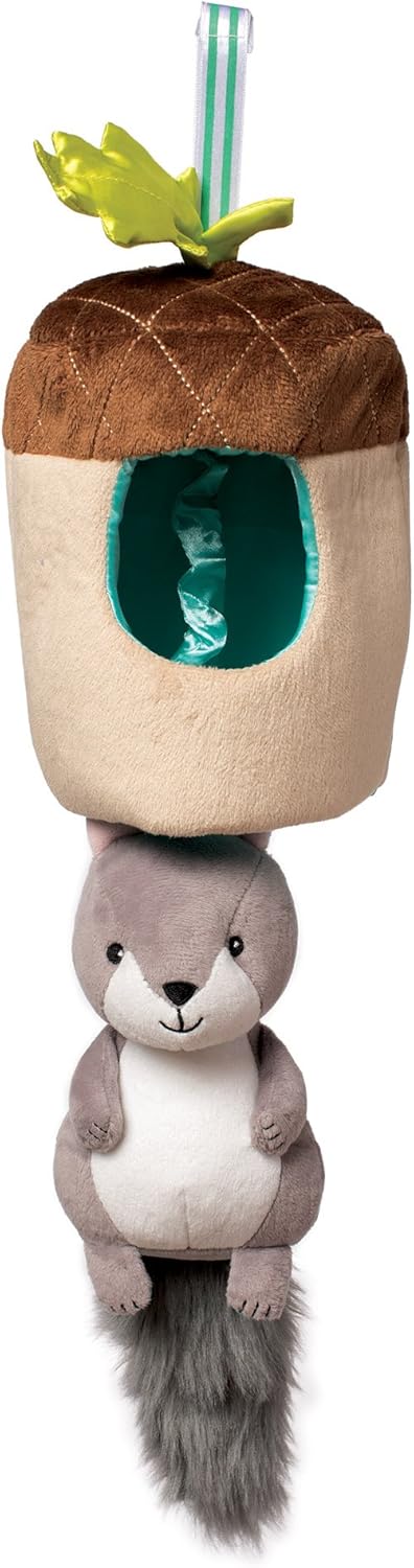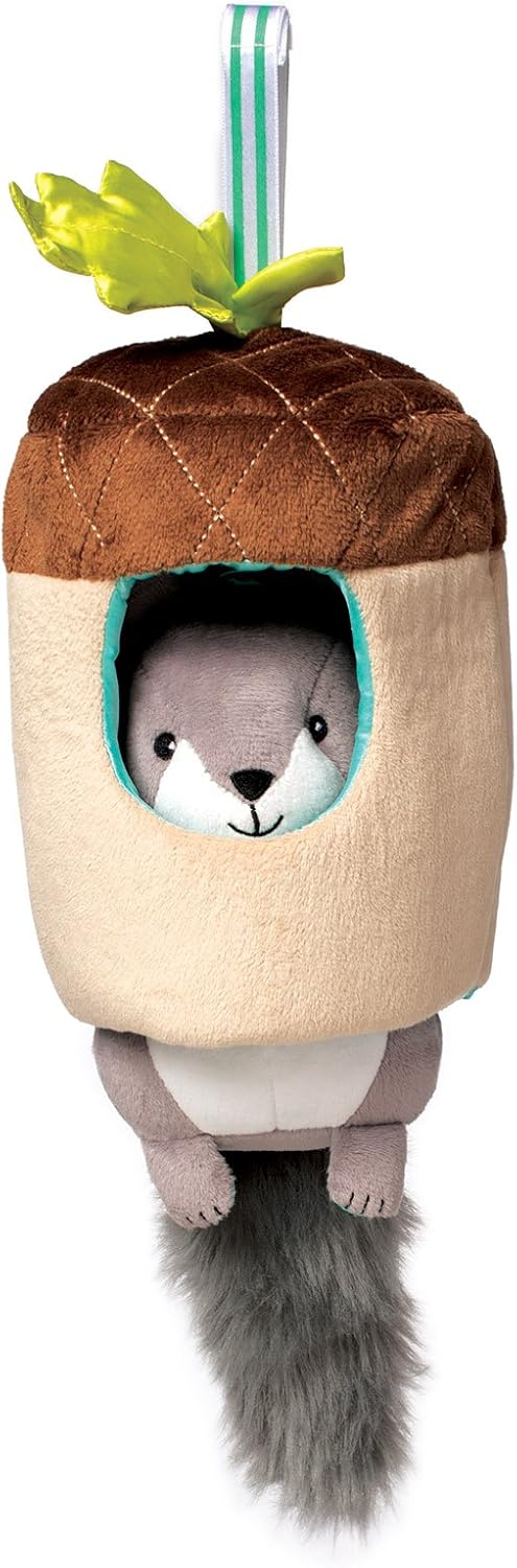 A whimsical woodland musical toy perfect for on-the-go! Discover crinkle sounds and fabric textures as you pull the squirrel down to hear the lullaby.