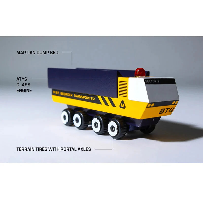 Equipped with a suspension base, the MBT (Mars Bedrock Transporter) is built to haul the red rocks of Mars, like a dump truck!