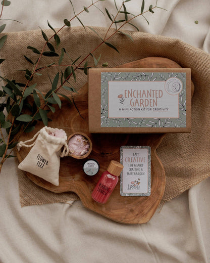 A MINI POTION KIT FOR CREATIVITY A mini potion kit about fairies and pixies. Mix it up and watch it fizz to make potions about creativity to entice fairies into your garden.