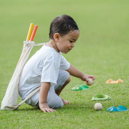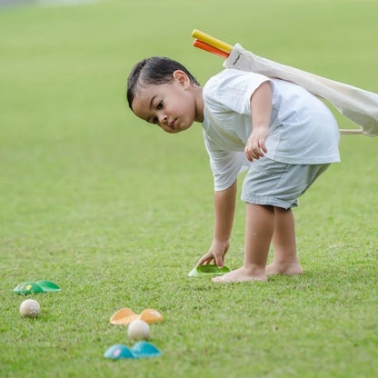- Develop a love for the game at an early age with the PlanToys Mini Golf Full Set