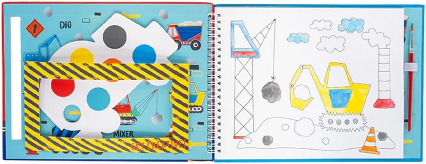 Spiral bound paint pad which includes 8 individual truck-shaped paint palettes, 8 gorgeous tear out pictures and a paint brush. Simply add a small amount of water onto your brush, swipe across the paint colour on the palette and then paint your masterpiece! The paint palettes and brush are securely stored within the pad when not in use making it perfect for painting on the go!