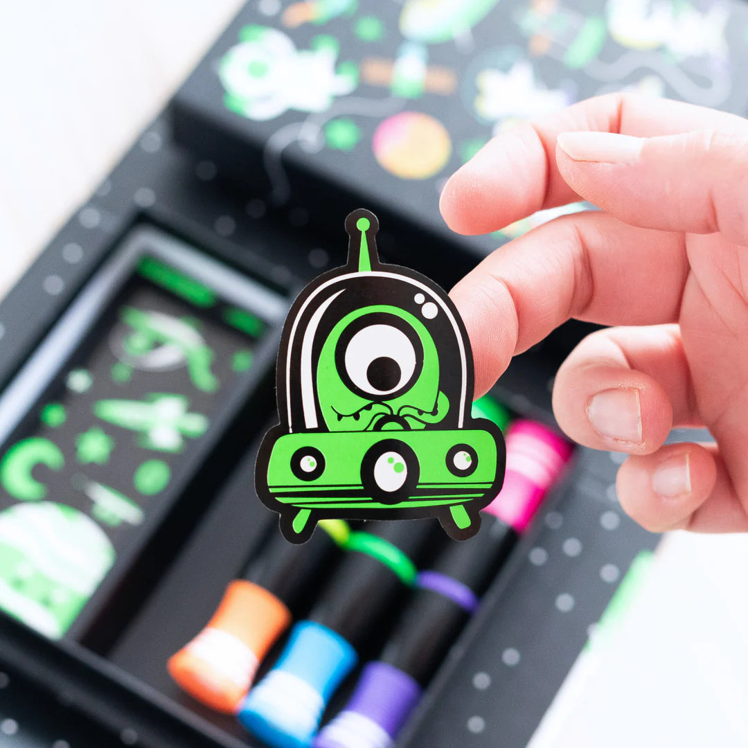 These Neon Colouring Sets are jam-packed with activities, neon-coloured markers and stickers, all designed to keep tigers happy on the go. Everything you need in one self-contained box, with a magnetic flap to keep contents safely stored.