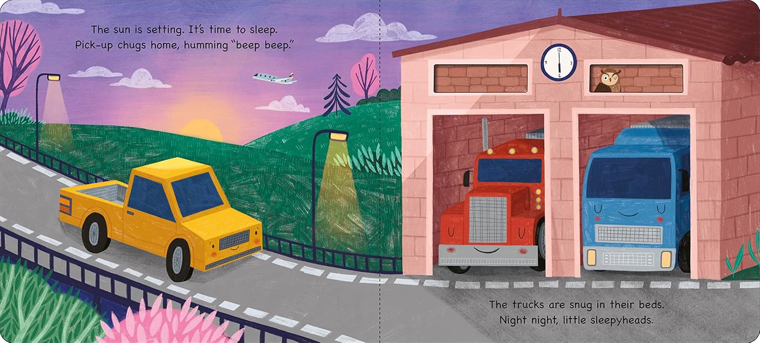 The trucks have had a busy day and it’s time to say a soft and cozy, "Night, night." Say goodnight to the digger, the pick-up truck, and all their truck friends, as you turn the shaped pages and watch as the trucks go to sleep, one by one. Perfect for settling your little one into bed and ending with your own, quiet, "Night, night."