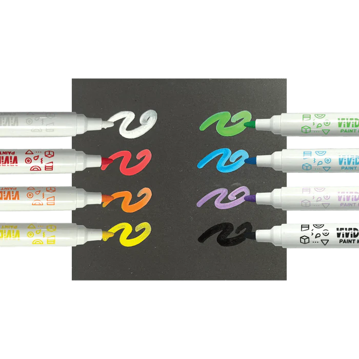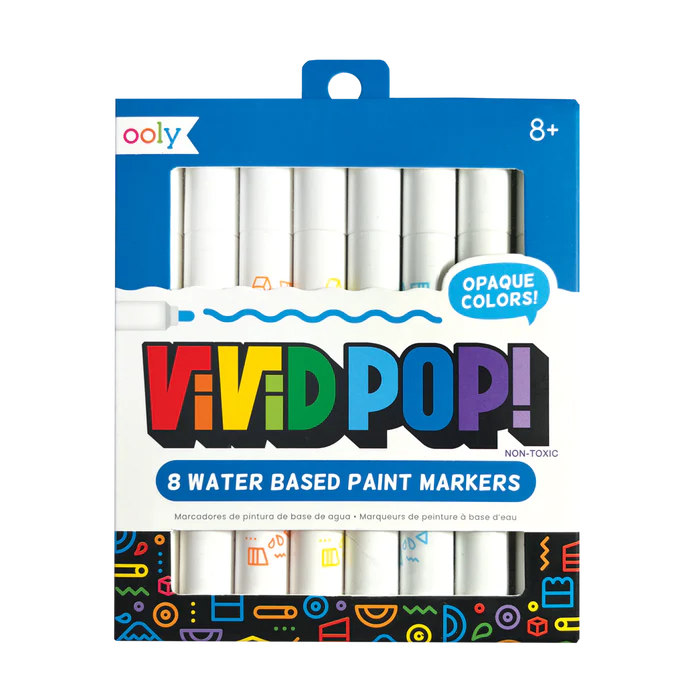 Take your painting up a notch with these Vivid Pop! paint markers. The set includes eight acrylic markers in a rainbow of bright colors. These multi surface markers are great for painting on things like rocks, wood, cardboard, and of course, paper!