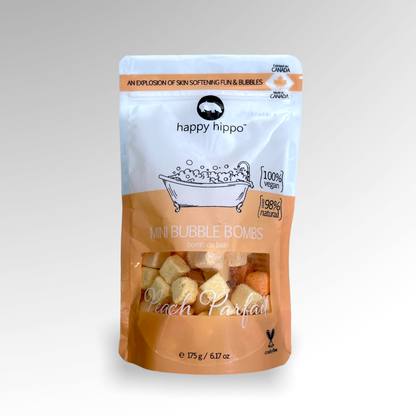 Tiny Bubble Bombs bursting with color! Add a few- add a lot. Mini bubble bombs are a great way to add just the right amount of bath bomb to any bath. Drop the mini bubble bombs into the bath and watch to color burst out of each bomb, releasing skin softening goodness and soothing scent while it covers the bath with tiny bubbles. Get creative with while soaking in sweet peaches while make art with the incredible swirls of color. Perfect for sensitive skin.