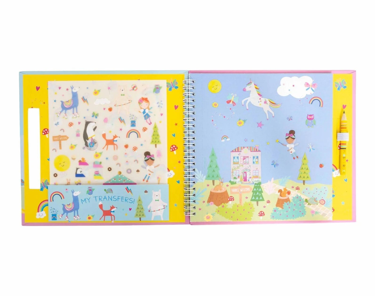 There's so much fun to be had with Floss & Rock's Transfer Fun sets! This set comes with over 150 brilliant rainbow fairy themed transfers, 6 colorful scenes to place them onto, 6 plain pages for freestyle doodling and a pencil. Your little one can open the spiral bound book to find all of their transfers neatly stored in the 'My Transfers' pocket, and they can flick through the pages of the book to find the perfect scene to place each one. Then, they can simply scratch over the top of each drawing with the included pencil and lift up the sheet, and like magic they'll see it transferred onto the page! They will surely be entertained for hours on end as they create beautiful pictures with fairies, unicorns, llamas and more!