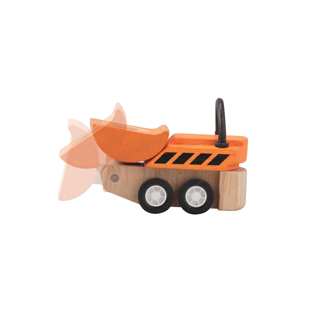 - Set comes complete with 3 construction vehicles made of wood and equipped with rubber tires