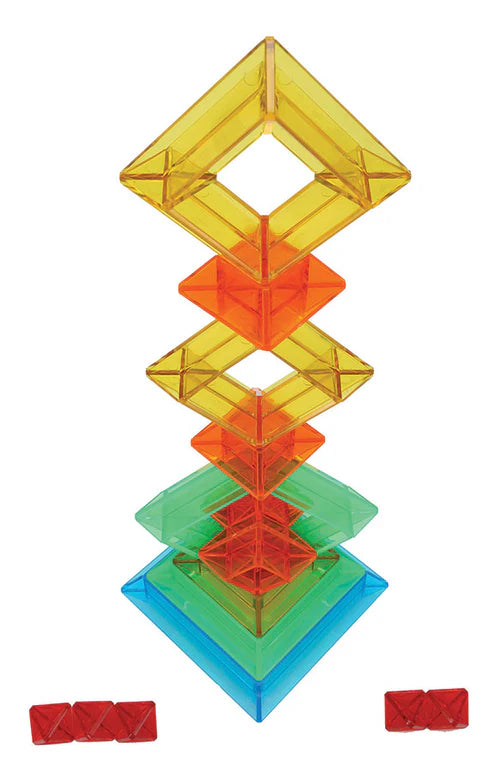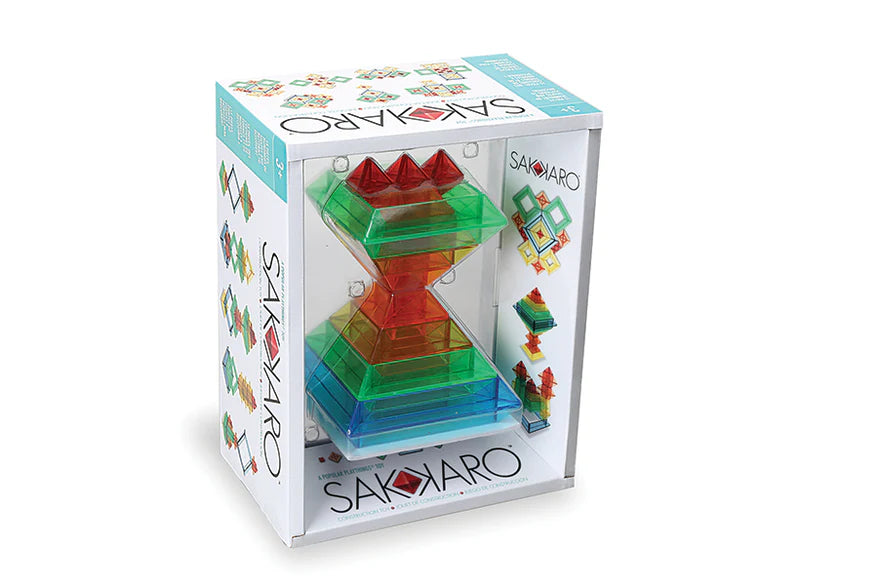 Unleash your creativity and explore endless possibilities with Sakkaro (Bilingual)! This unique toy allows you to effortlessly create a wide range of shapes in both 2D and 3D formats. With 12 colorful shaped pieces, you can construct a tower that is truly one-of-a-kind. Elevate traditional block play and discover a new world of colorful and vibrant construction fun!