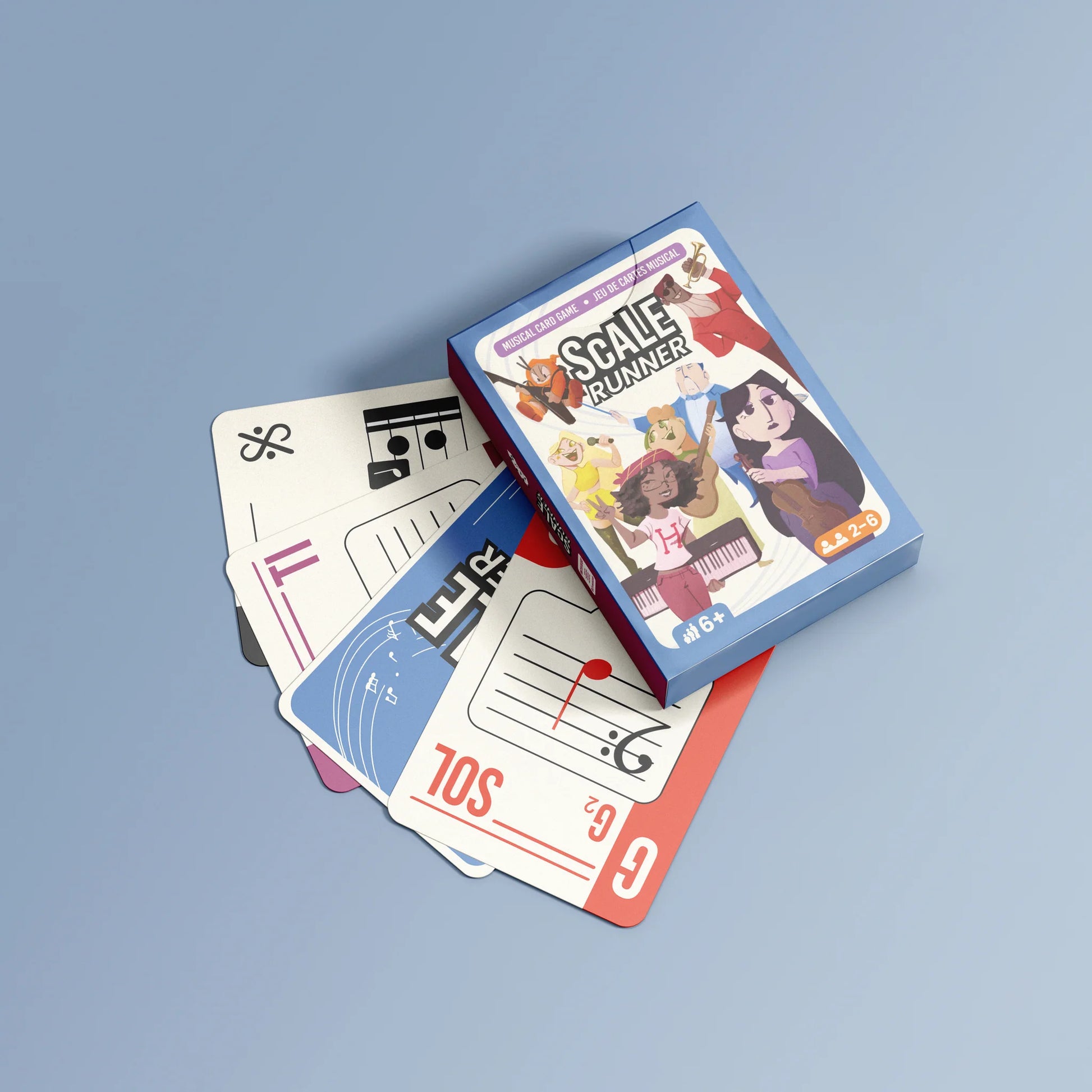 Scale Runner is a fast-paced card game that helps kids learn the musical alphabet (A-G), while reinforcing basic musical concepts like piano, forte, and the rest. Through fun and strategic play, kids build music literacy, pattern recognition, and quick thinking.
