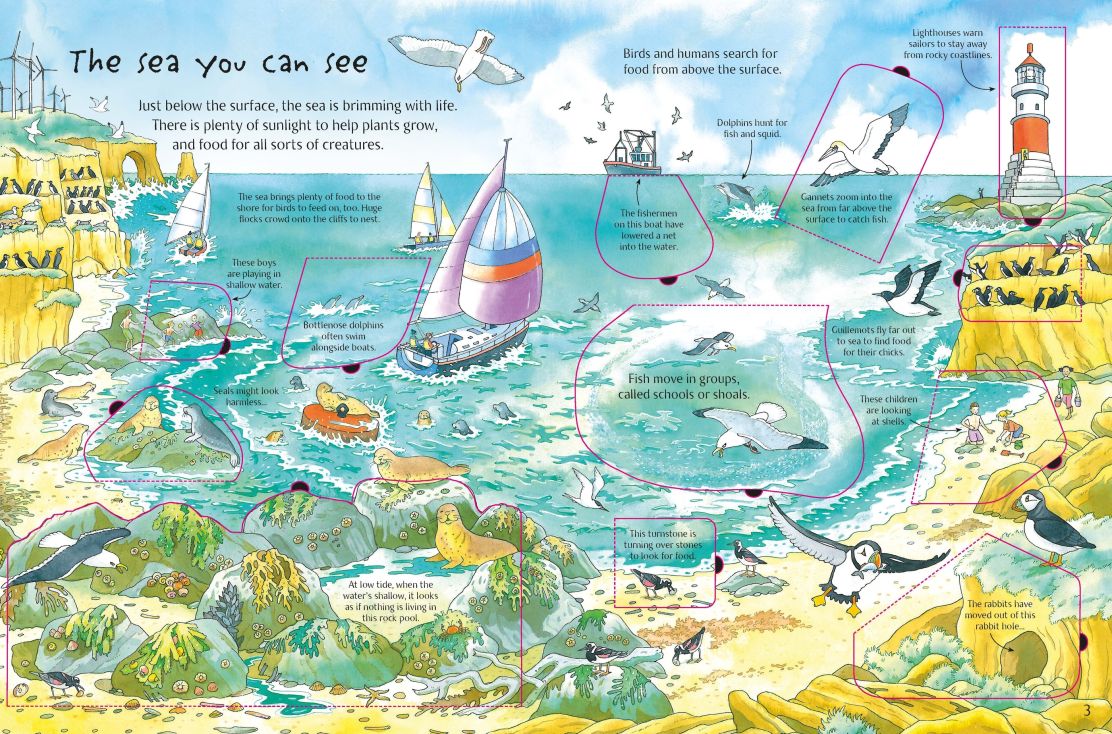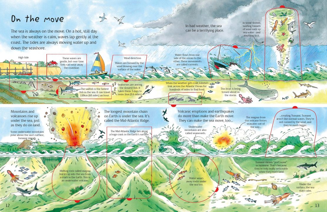 A fabulous flap book with over 80 flaps to lift and extra pages to open up to explore life under the sea. Shows coral reefs teeming with fish, the icy waters of the Arctic and the dizzying depths of ocean trenches, and shipwrecks and pirate booty too. Flaps reveal extra facts, information and surprises.
