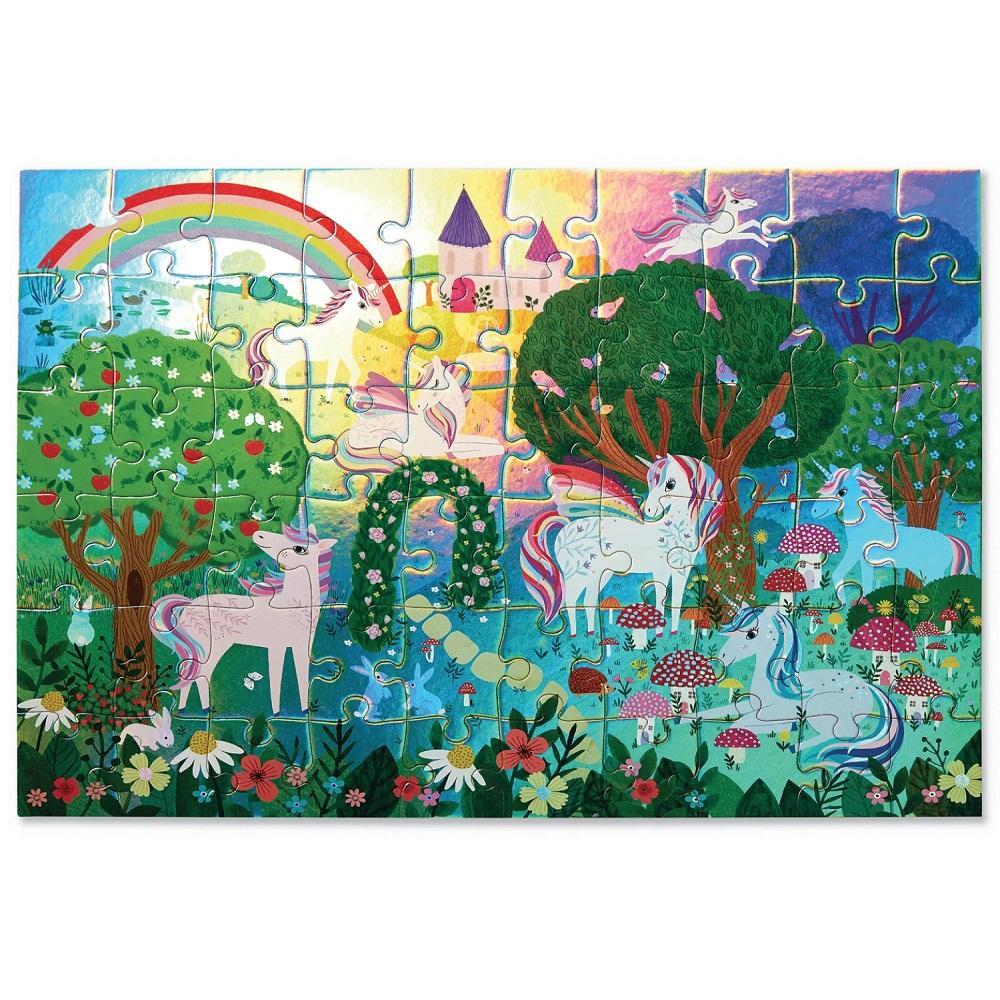 Kids Love Unicorns! Girls are fascinated by the fanciful world of unicorns, rainbows and palaces. This is a puzzle to love with its beautiful scene featuring a wondrous world of unicorns. Printed on holographic foil. A perfect gift for children ages 4 years and up.
