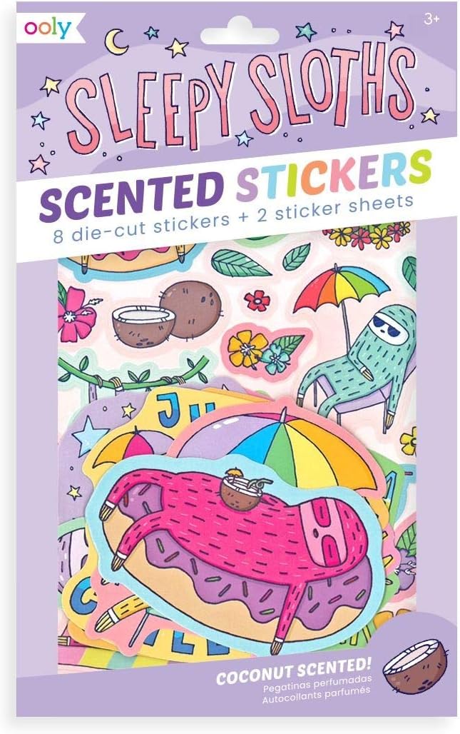 Sweeten up your notes with scented sleepy sloth stickers. The Sleepy Sloths Scented stickers are here to inspire you with their cool and chillaxed style. Coconut scented scratch stickers