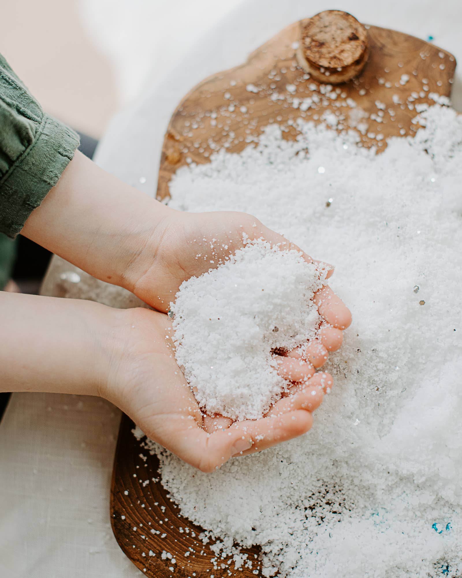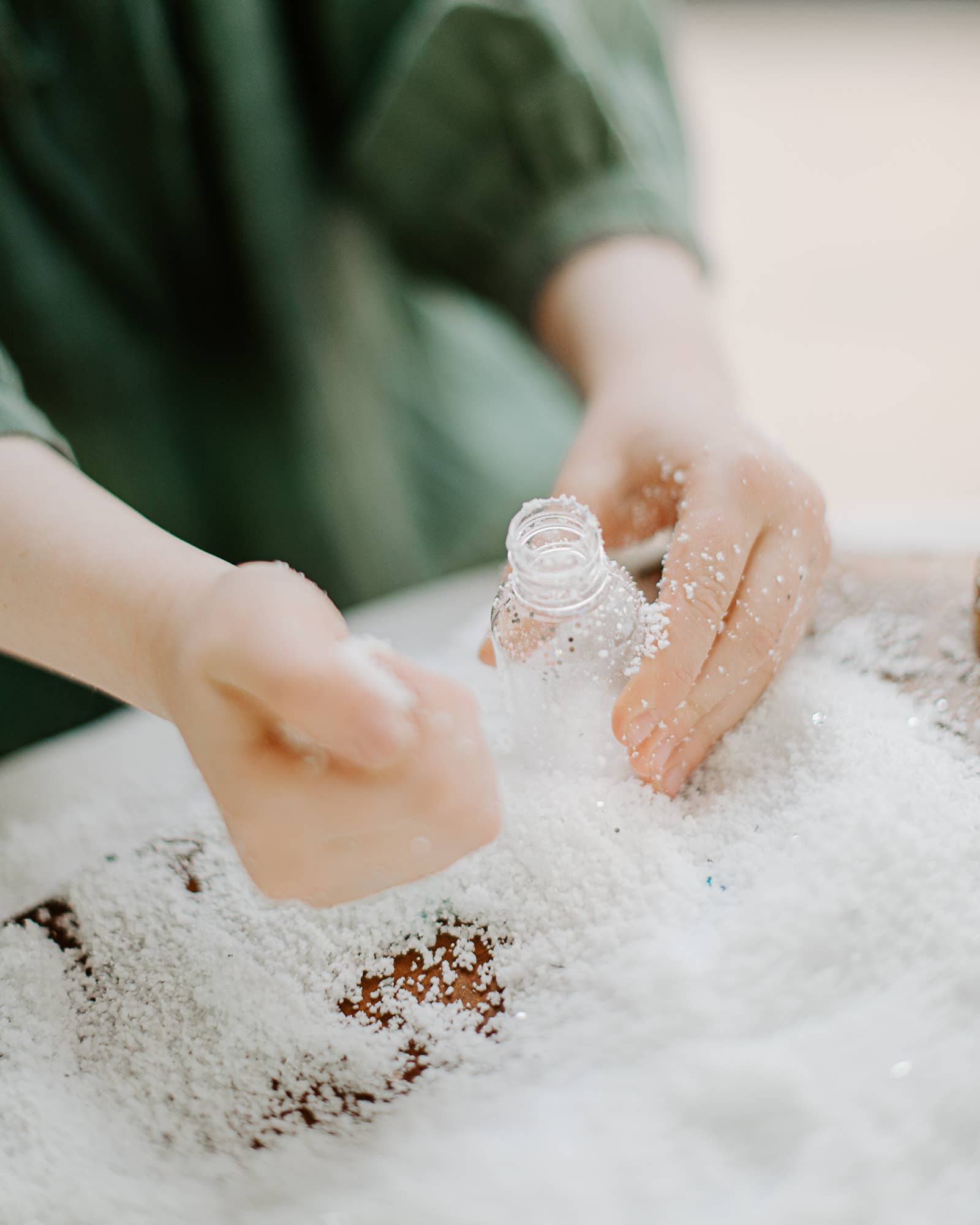 Pour over small amounts of water and watch it bloom, or for an instant snow explosion add a whole cup of water to the bottle of snow.