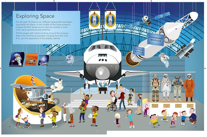 A lighthearted look at space travel, from the scientists at Mission Control to astronaut training, lift-off and life on the International Space Station. With over 250 stickers of astronauts, scientists, rovers, rockets and even whole galaxies to add to the colorful scenes. Children can add stars to the night sky, position astronauts and footprints in a scene depicting the first Moon landing and fill a spaceship with mysterious aliens. A humorous - and informative - guide to space travel which will delight any small astronaut-in-training.