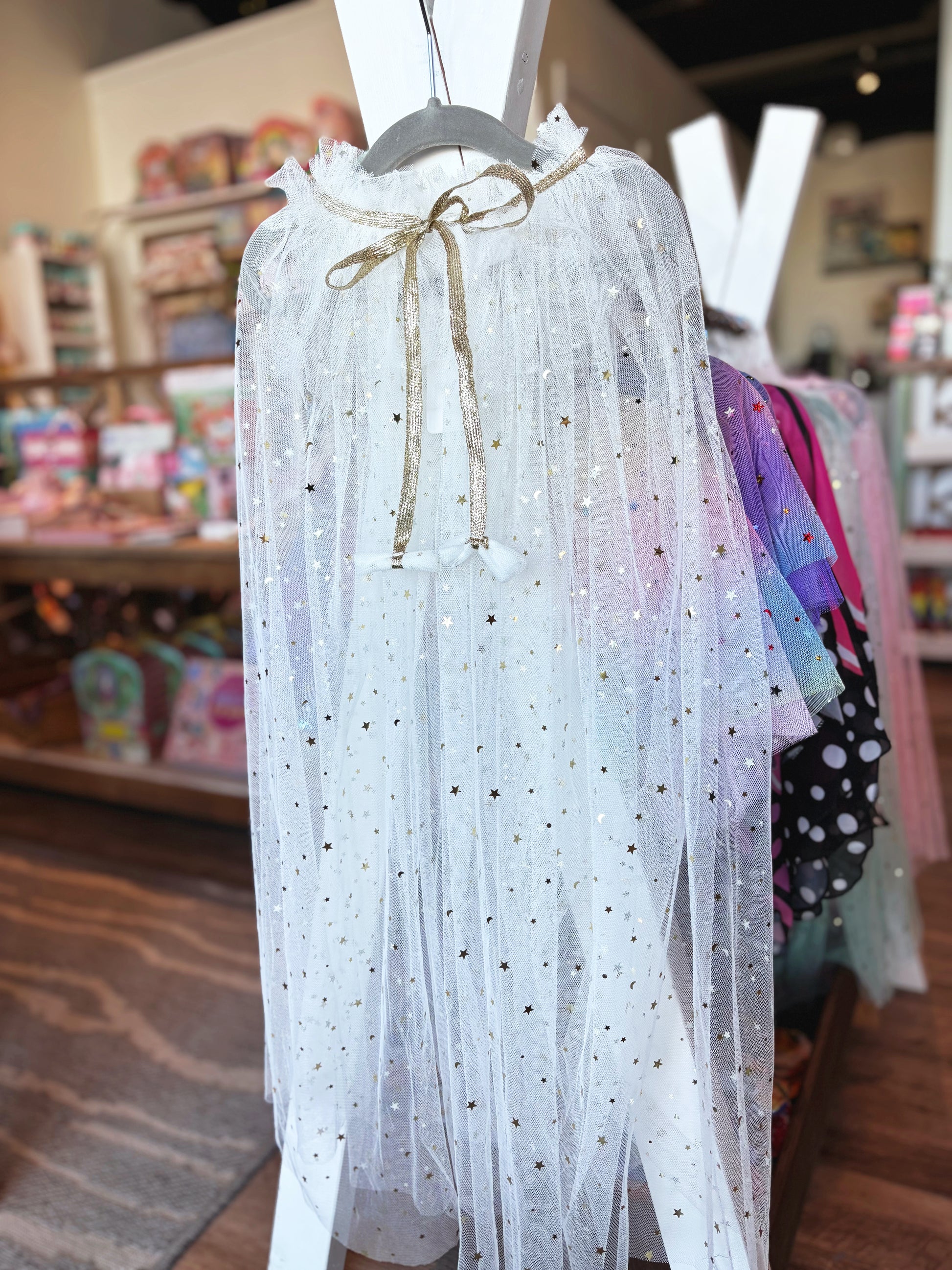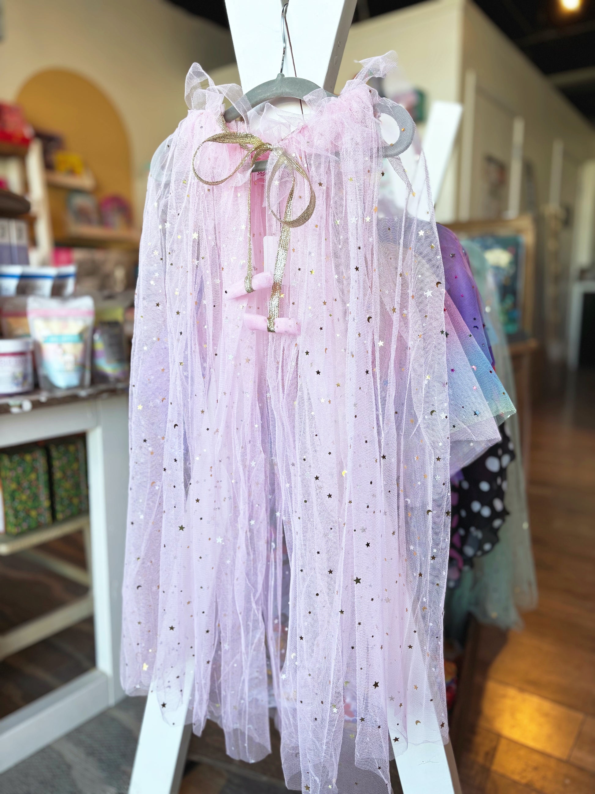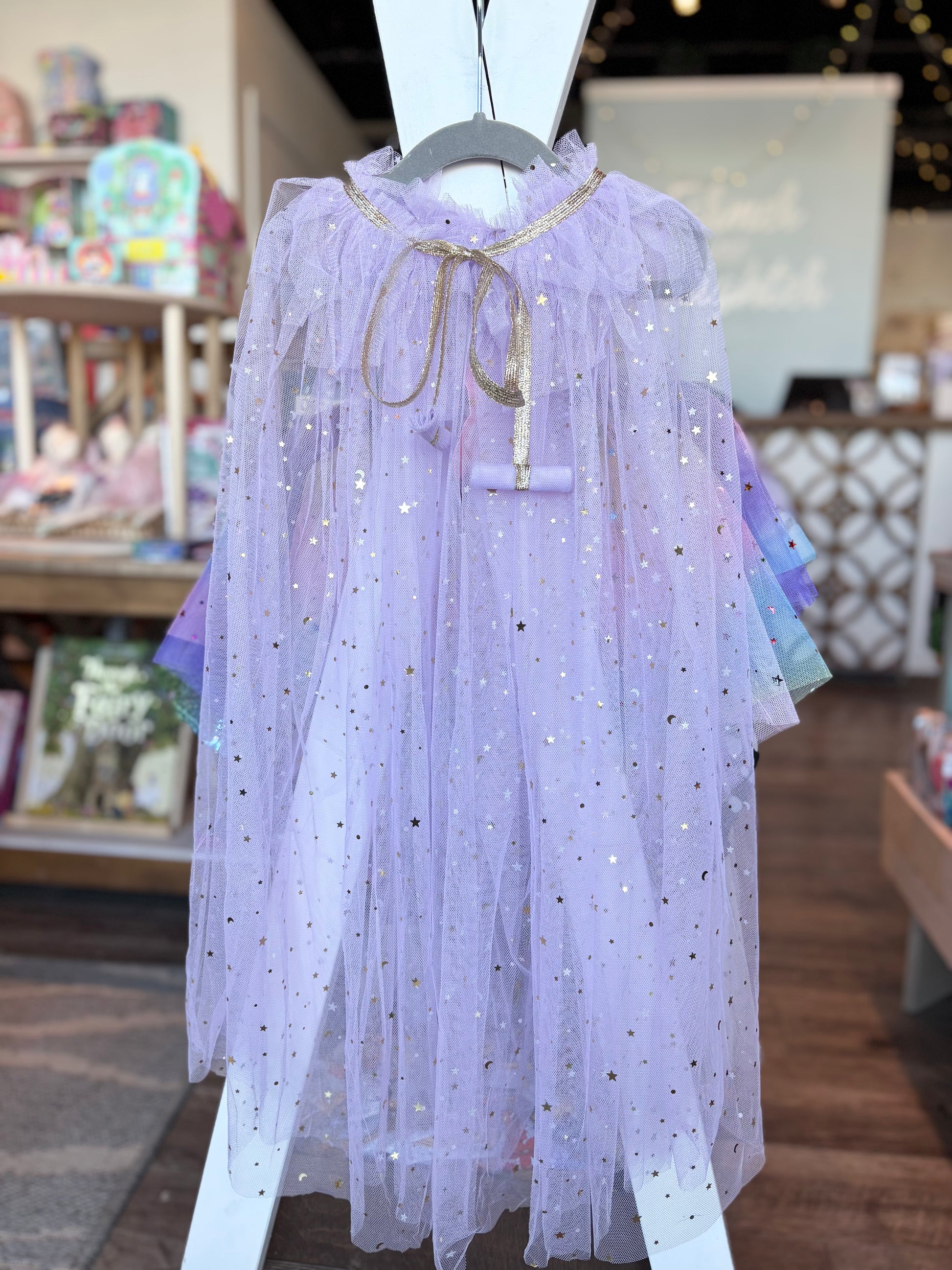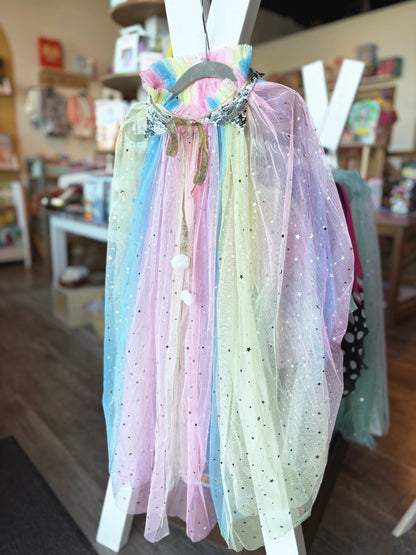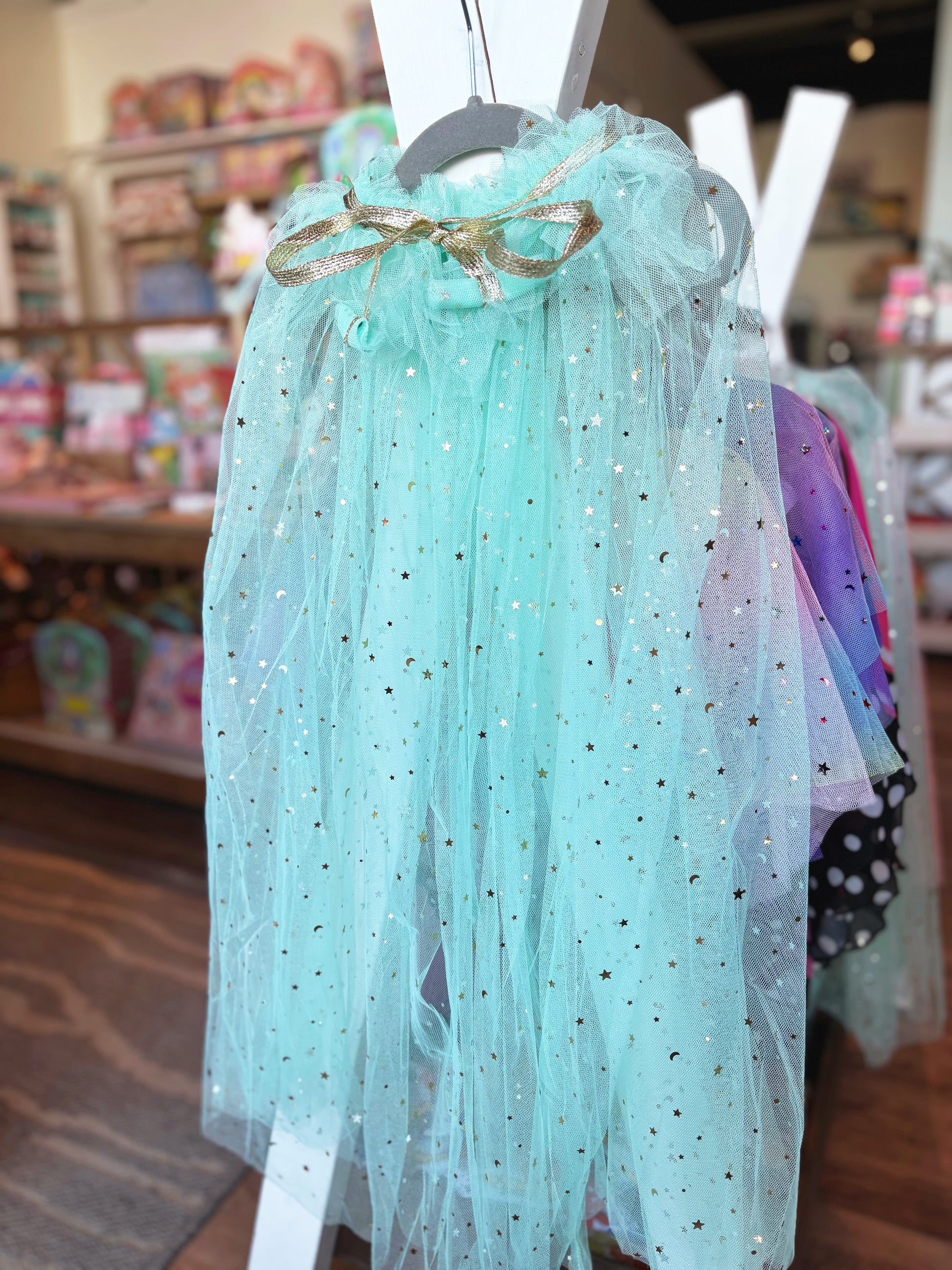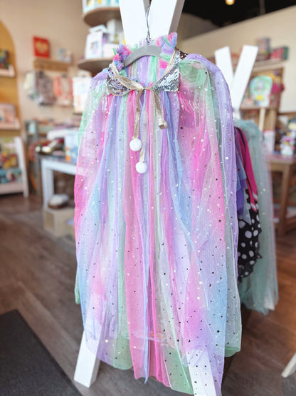 Crafted from high-quality, soft fabric, it features dazzling sparkles that catch the light and create a mesmerizing effect with every movement. The cape is lightweight and comfortable, making it perfect for dress-up parties, playdates, or just a day of imaginative play at home.