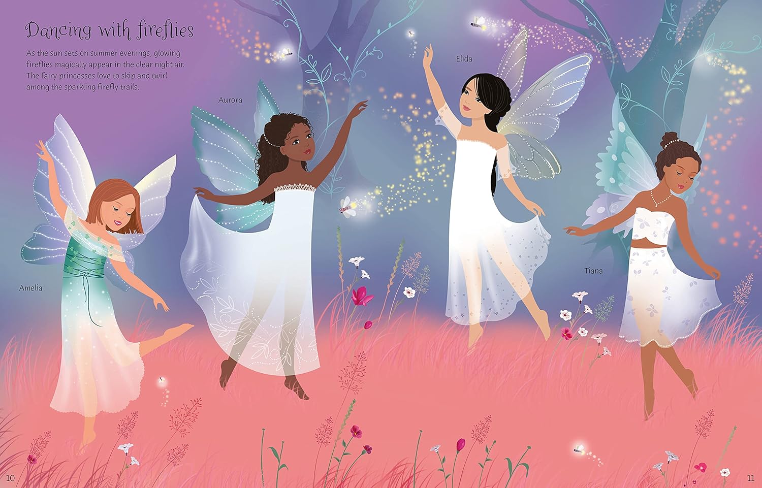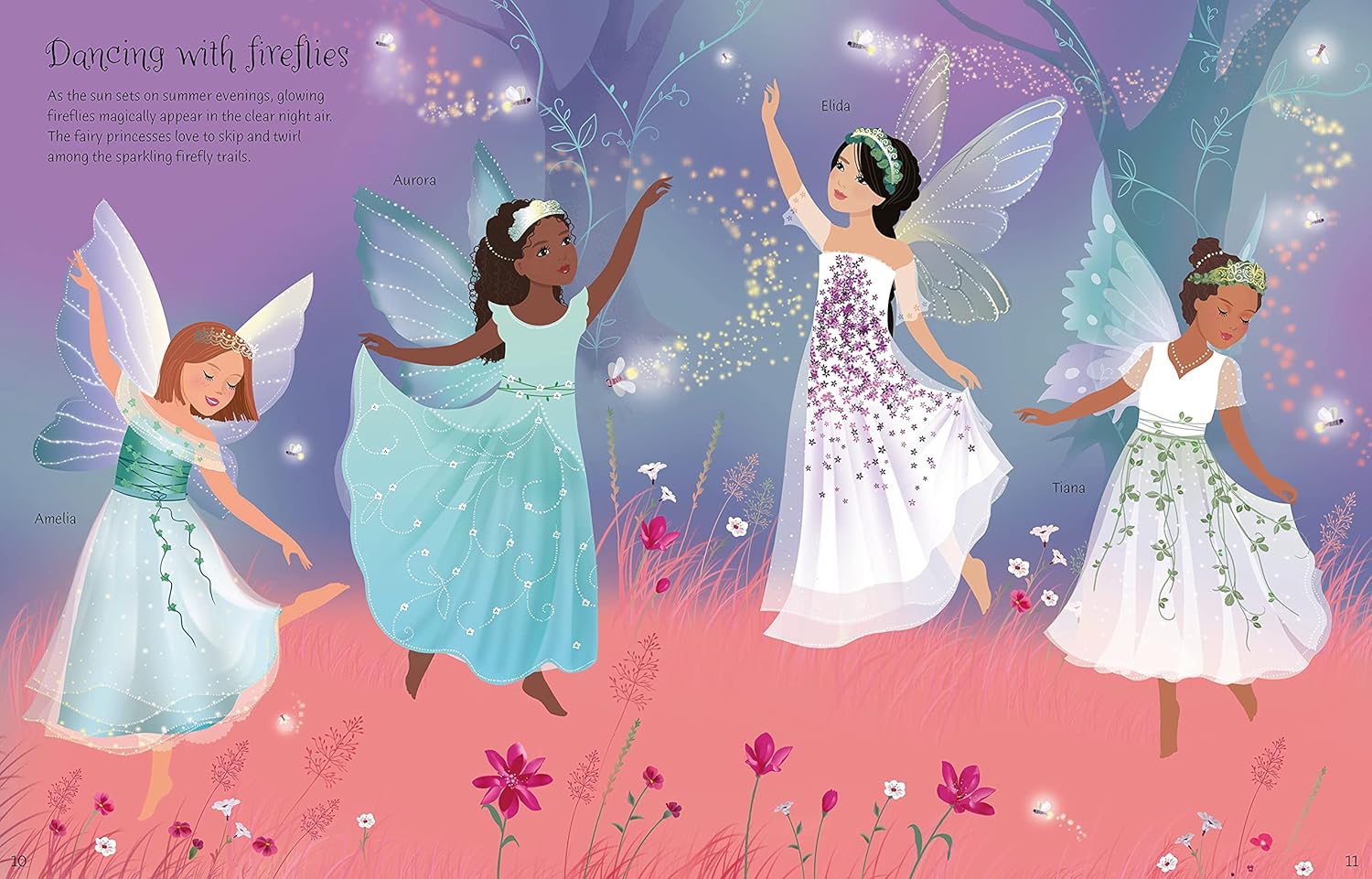 Join the fairies as they tiptoe with unicorns in an enchanted forest, skip barefoot beside a misty lake and explore a secret rose garden in this delightful new addition to the best-selling Sticker Dolly Dressing series.