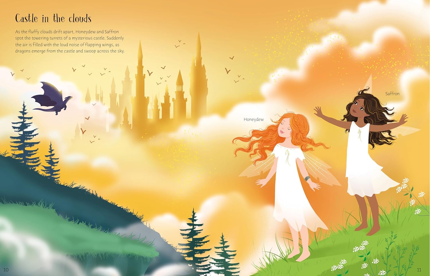 Enter the magical kingdom where fairies fly with dragons through a rainbow sky, mermaids and seals explore an underwater palace, pixies dance in a towering toadstool town and elves creep through a forgotten forest. Use the stickers to dress the dolls and decorate the fantastic scenes.